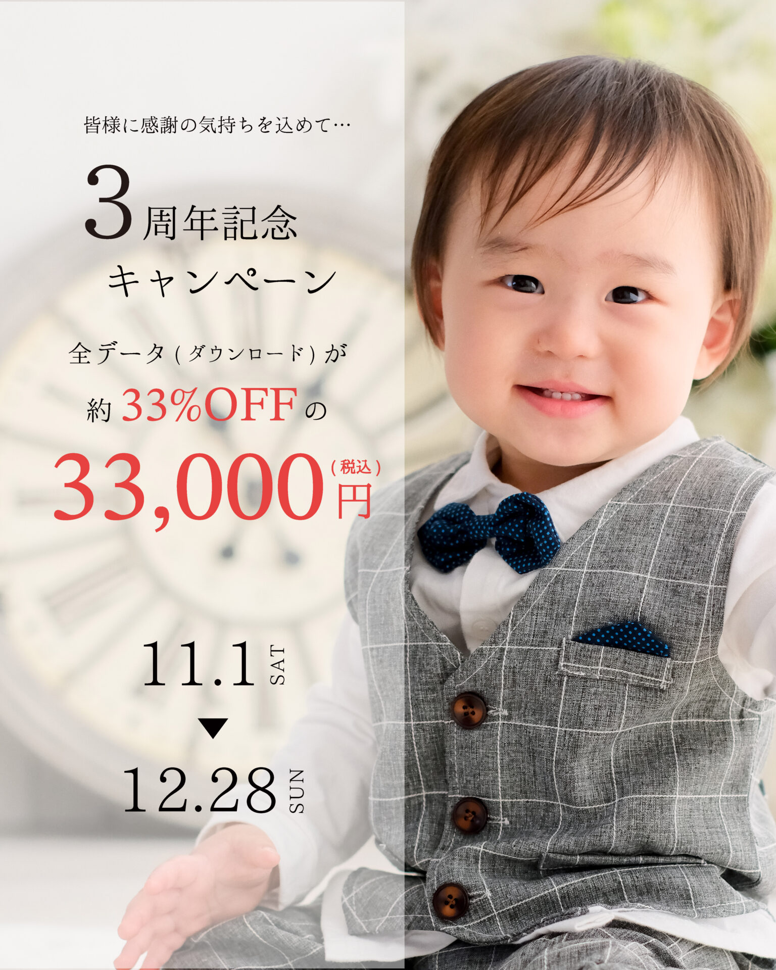 Category お知らせ (4)キャンペーン (21)その他 (0) カテゴリー: キャンペーン 3周年記念キャンペーン キャンペーン 2025.10.23 Halloween Party 2025 キャンペーン 2025.09.22 七五三キャンペーン キャンペーン 2025.08.31 早撮り 七五三キャンペーン キャンペーン 2025.06.29 青の花フォトキャンペーン キャンペーン 2025.05.25 超早撮り 七五三キャンペーン キャンペーン 2025.04.19 ふわくま撮影会 キャンペーン 2025.04.17 ファミリーフォトキャンペーン キャンペーン 2025.04.17 マタニティフォトキャンペーン キャンペーン 2025.04.05 入学・卒業キャンペーン キャンペーン 2025.02.28 Page 1 of 3123